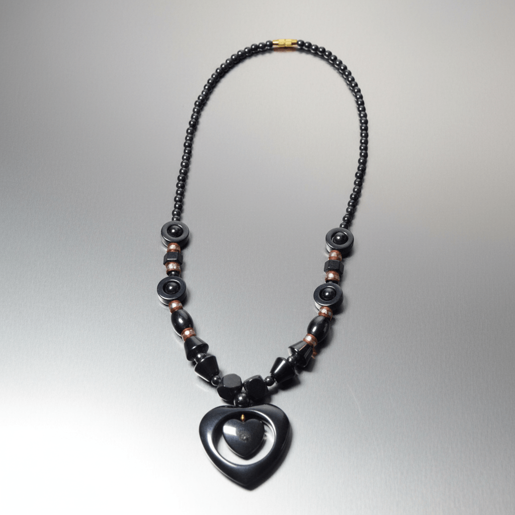 Hematite Heart Pendant Beaded Gemstone Necklace | MPENZII