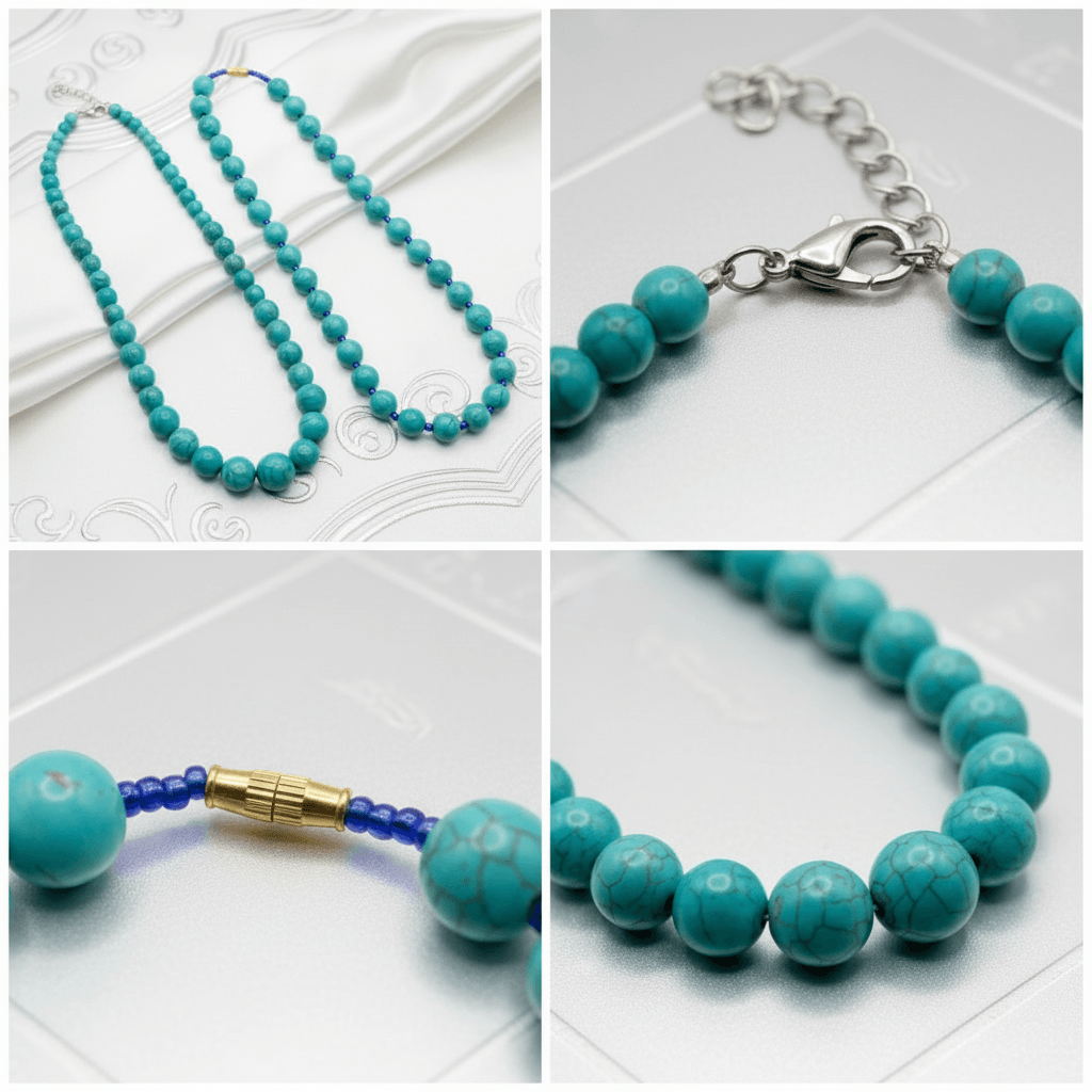 Bead Size (Necklace): 10–12 mm natural turquoise beads