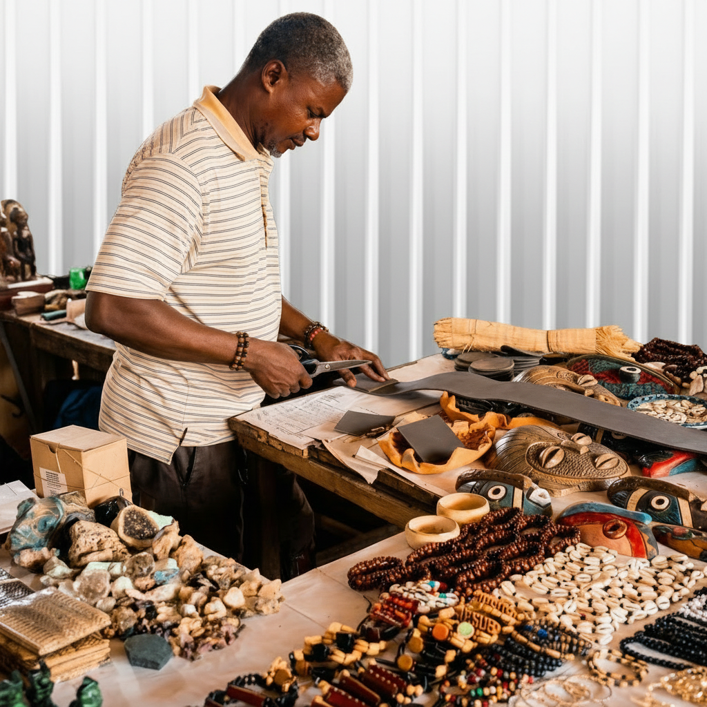 MPENZII bags are shaped through structured hand assembly and disciplined material integration, uniting Kuba textile, raffia weave, and leather reinforcement. Hand construction introduces natural variation and structural nuance that differ from standardized industrial production, while maintaining proportion and enduring functional clarity.