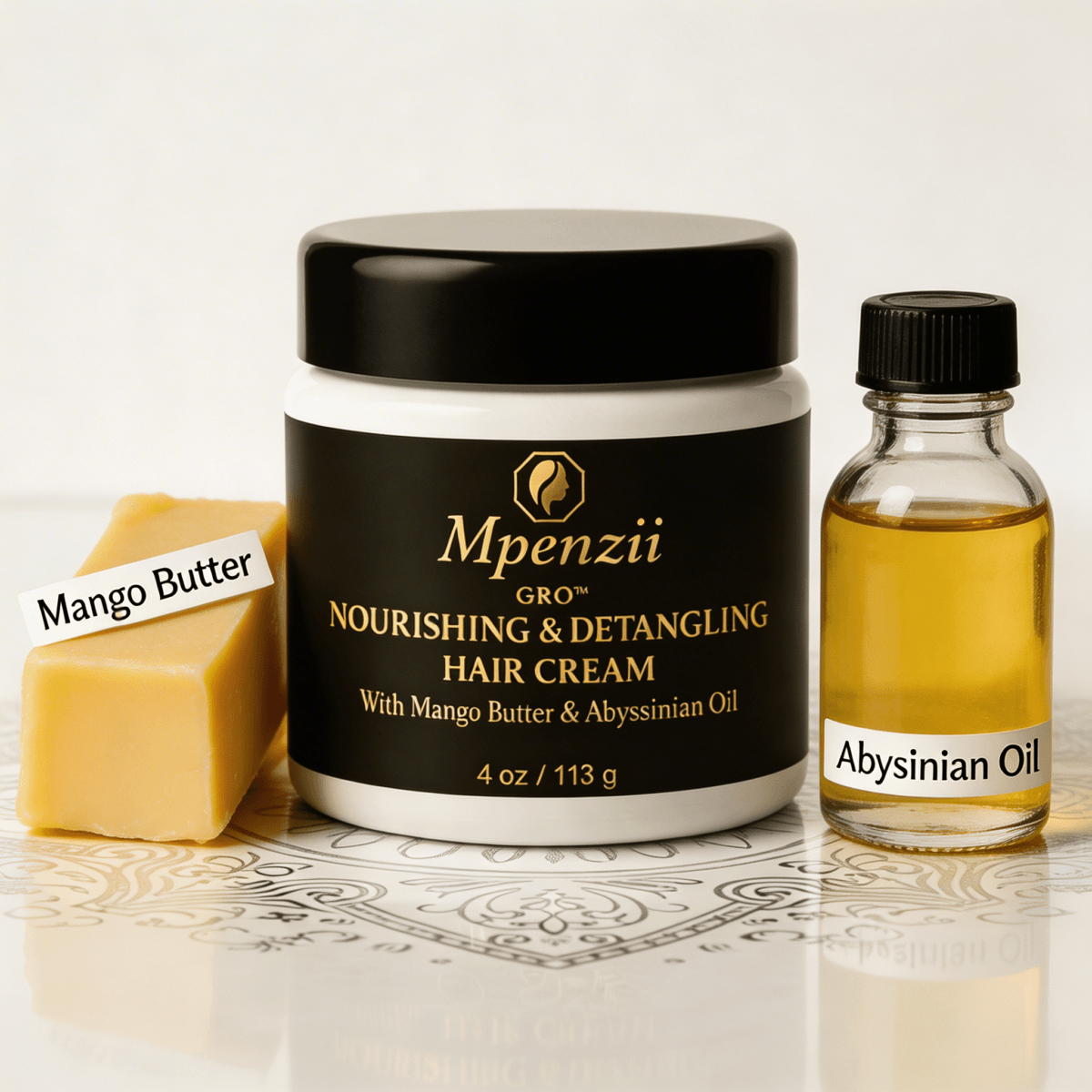 MPENZII formulations are developed through disciplined material selection and structured blending, balancing plant butters, lightweight oils, and conditioning agents to achieve controlled performance. Each batch is produced with attention to texture, absorption, and long-term usability, resulting in subtle variation while maintaining consistency in function and finish.