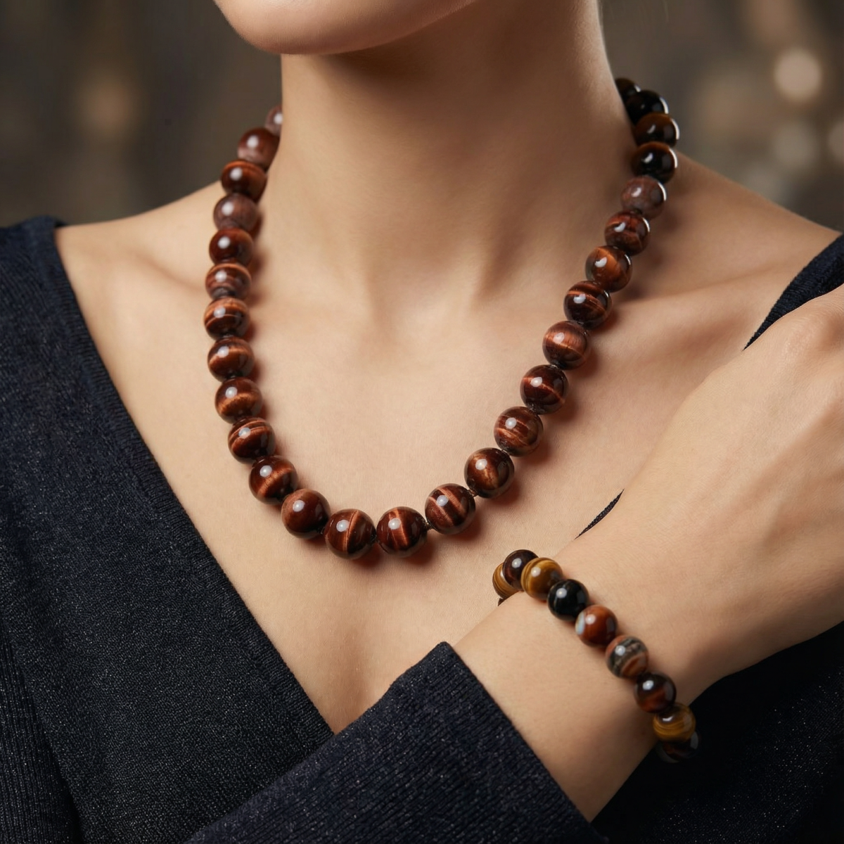 Tiger’s Eye Necklace & Bracelet Jewelry Set