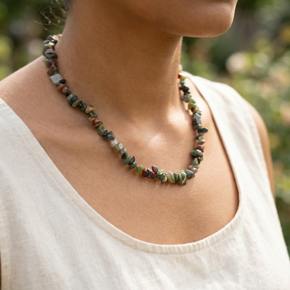 Stone: Natural multi-stone composition (Indian agate/jasper family tones)