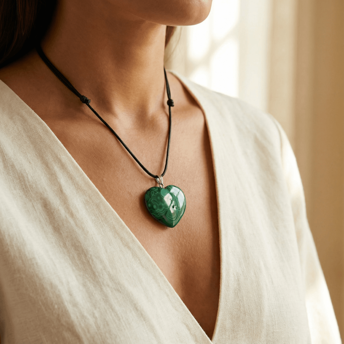 Malachite Pendant & Adjustable Cord Necklace