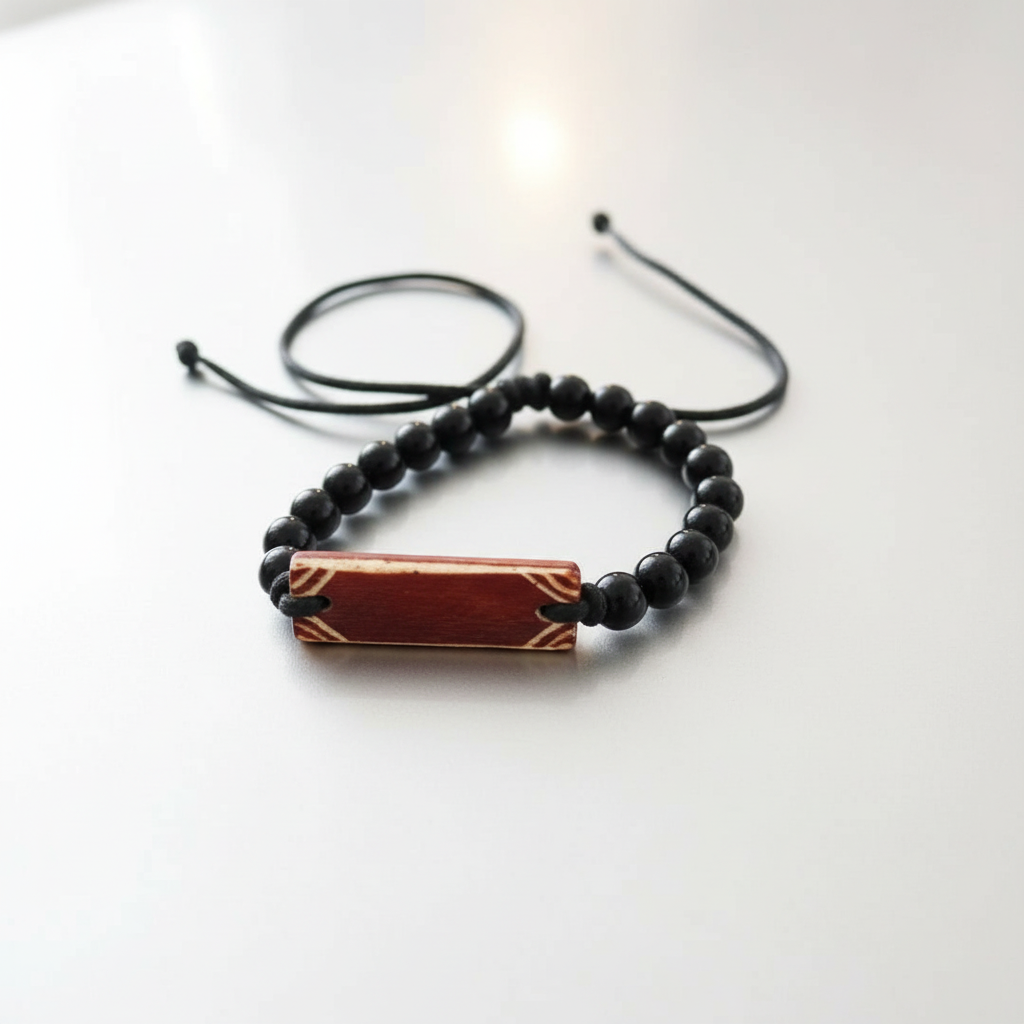 Designed with an adjustable sliding cord system, the bracelet adapts comfortably to various wrist sizes while maintaining clean proportion and structure.