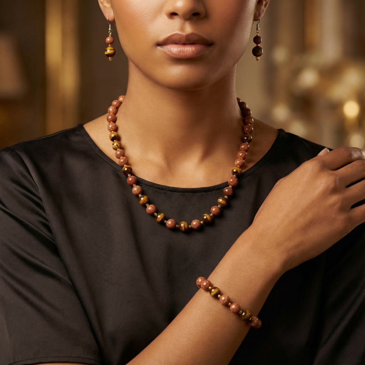 Tiger’s Eye & Goldstone Necklace, Bracelet & Earrings