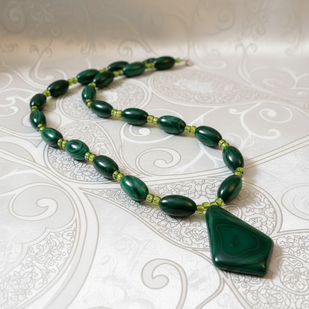 Deep Green Malachite Pendant Beaded Gemstone Necklace