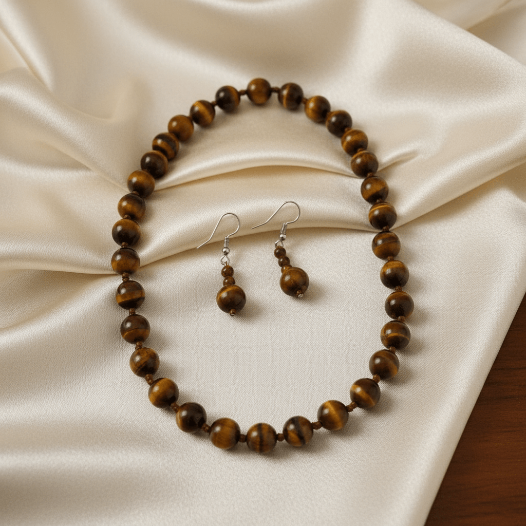 Tiger Eye Beaded Necklace & Earring Set — Natural Stone